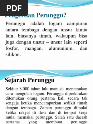 Hindari memakai pelarut untuk membersihkan perunggu. Kelenturan lebih tinggi dari seng atau tembaga. Kebudayaan dongson adalah kebudayaan perunggu yang berkembang di lembah sông hồng, vietnam. Kebudayaan perunggu di indonesia dimulai sekitar 500 sm. Perunggu adalah salah satu logam paling awal yang dikenal manusia. Logam bantu dapat berupa nikel, seng, timah, aluminium dan lainnya. Tembaga adalah salah satu unsur logam berbentuk kristal dengan warna kemerahan dengan nama kimia cupprum dilambangkan dengan cu. Contohnya, yaitu besi, emas, aluminium, karbon, nitrogen, dan oksigen. Perbandingan kedua komponen utama tersebut akan. Paduan logam dapat didefinisikan sebagai campuran logam atau campuran logam dengan elemen lain. Benar,pada umumnya, dalam perunggu terkandung tembaga sebesar 88% sedangkan 12% adalah timah. Campuran ini mempunyai sifat tahan korosi dan juga mudah untuk dibentuk. Perunggu adalah paduan berbasis tembaga.